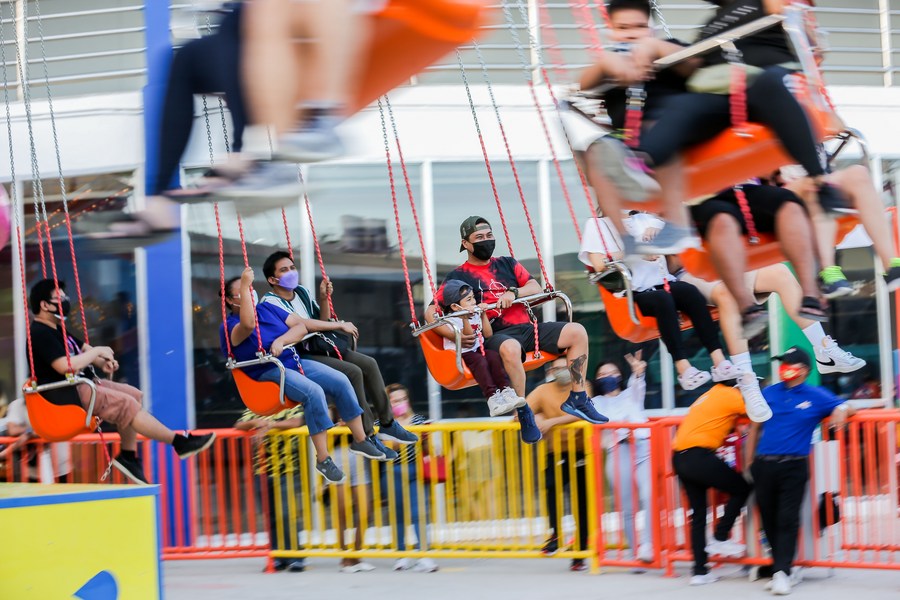 People play in a reopened amusement park in Pasay City, the Philippines, Feb. 24, 2022. (Xinhua/Rouelle Umali)