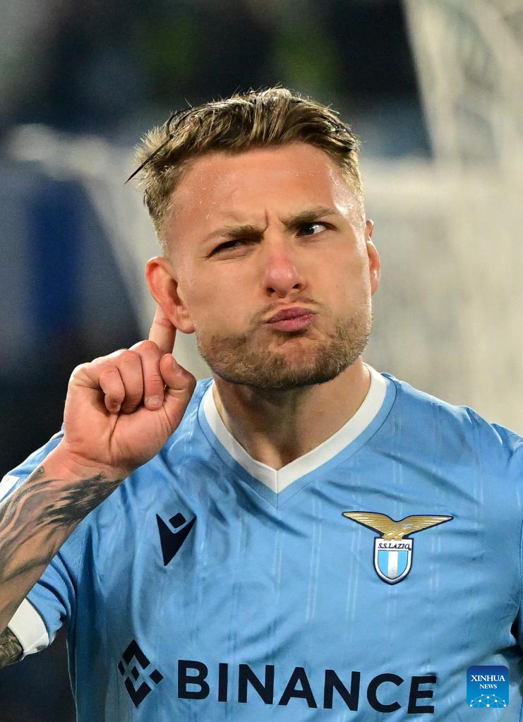 Lazio's Ciro Immobile celebrates his goal during a Serie A football match between Lazio and Venezia in Rome, Italy, March 14, 2022. (Photo by Alberto Lingria/Xinhua)