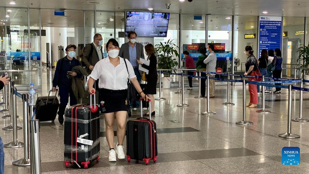 Travelers are seen at Noi Bai International Airport in Hanoi, Vietnam, on March 15, 2022. Vietnam on Tuesday fully reopened its borders for international tourists, its tourism authorities said. (VNA via Xinhua)