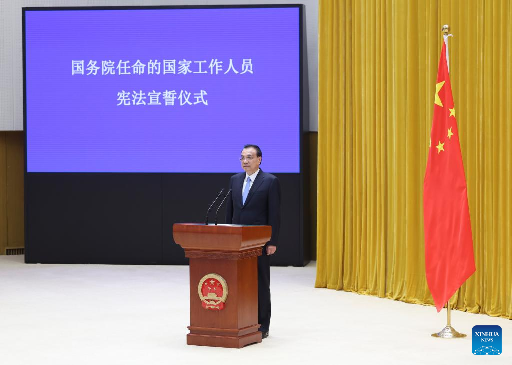 The ceremony was overseen by Premier Li Keqiang, who called on the oath-takers to be loyal to the Constitution, obey the law, remain dedicated to their duties and work diligently.