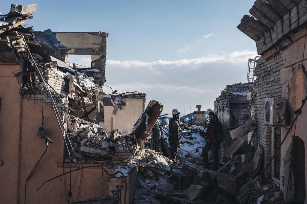 A man takes his belongings from his house in Kharkov, Ukraine, March 13, 2022. (Photo by Diego Herrera/Xinhua)