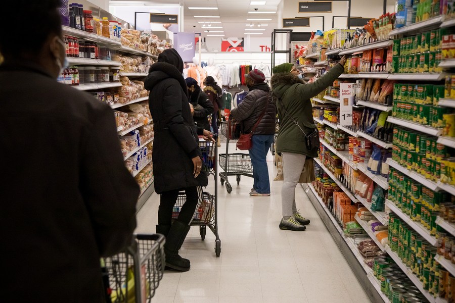 Customers shop at a store in the Brooklyn borough of New York, the United States, Feb. 10, 2022. (Photo by Michael Nagle/Xinhua)