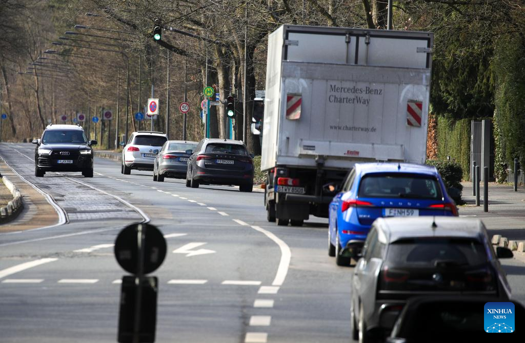 Photo taken on March 18, 2022 shows vehicles traveling on a road in Frankfurt, Germany. Responding to the recent surge in petrol and diesel prices in Germany, the Federal Cartel Office (BKartA) said on Wednesday that it will closely monitor price developments at the country's gas stations. (Photo by Armando Babani/Xinhua)