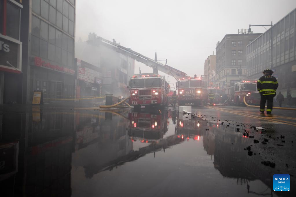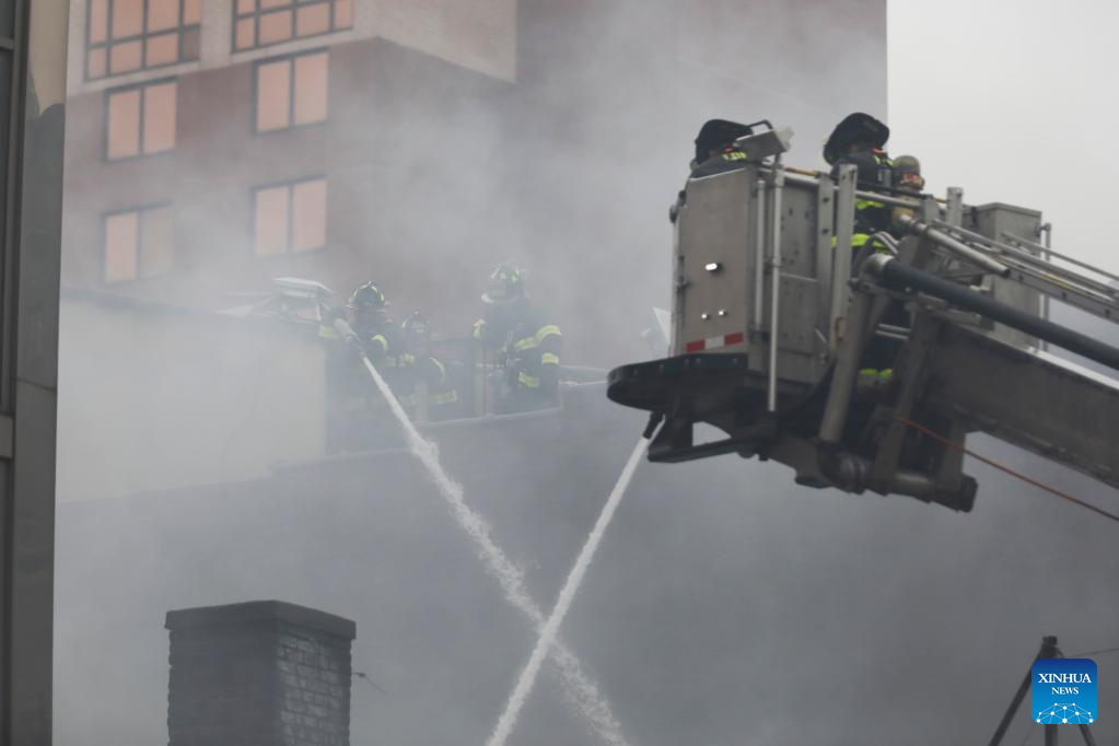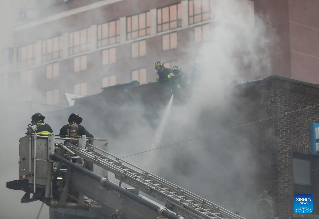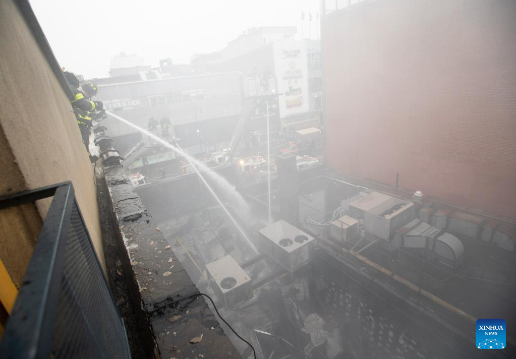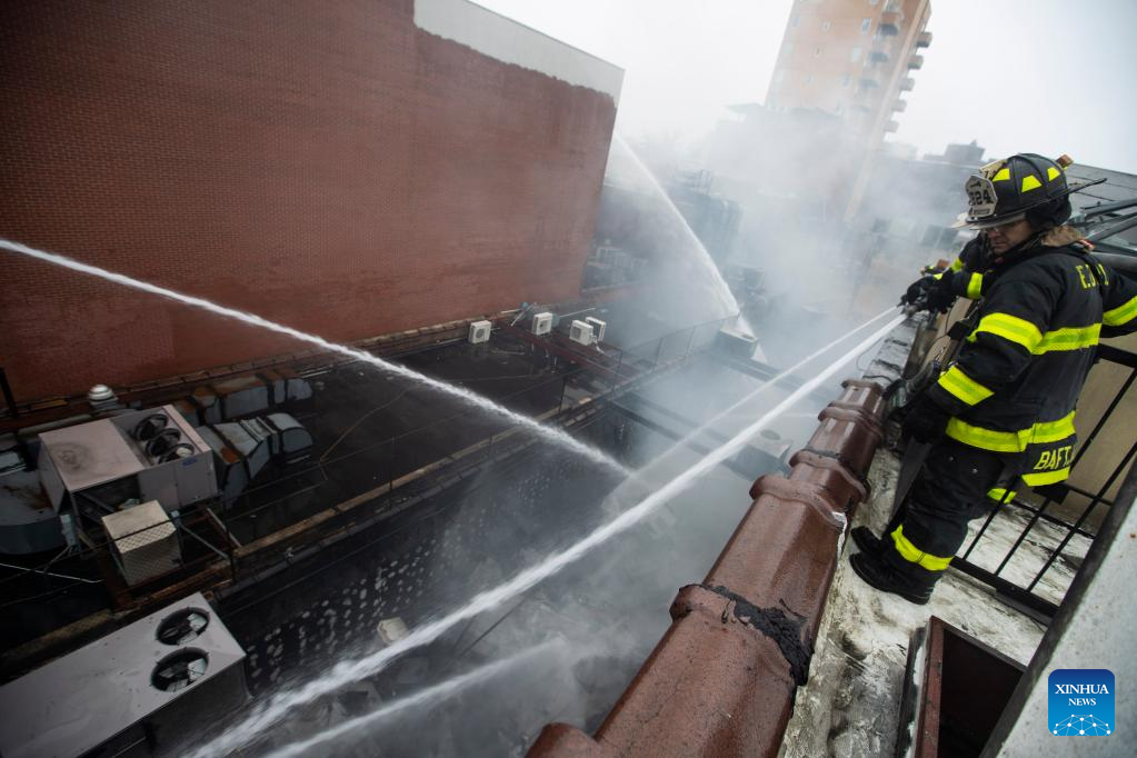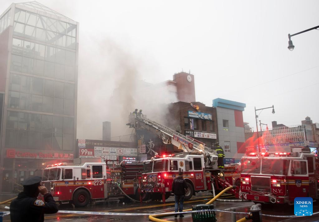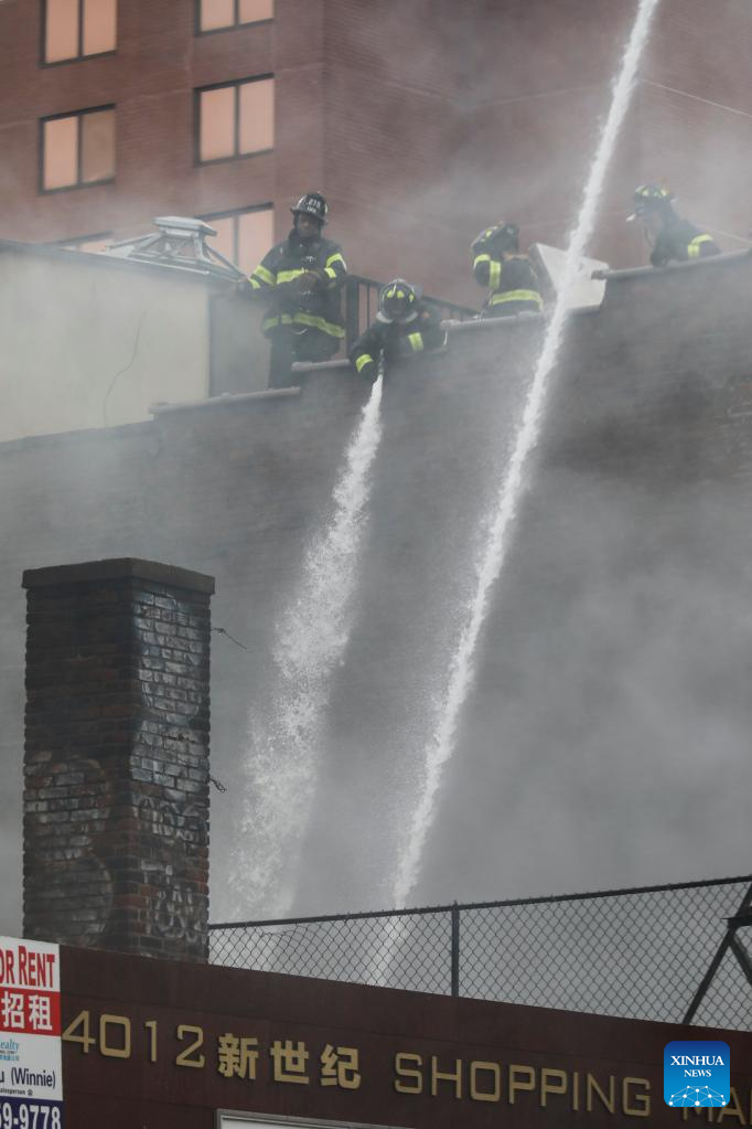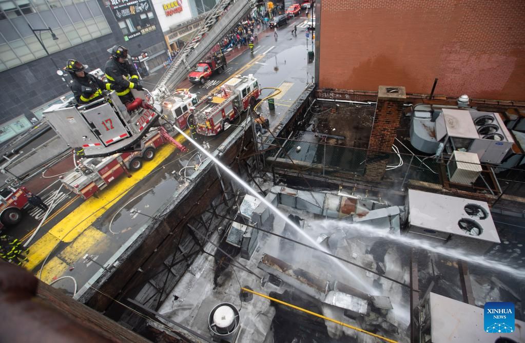 NEW YORK, March 17 (Xinhua) -- A commercial building in Flushing Chinatown of New York City suffered serious damage from a 5-alarm fire on Thursday morning.