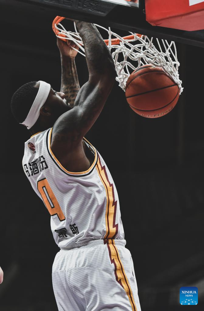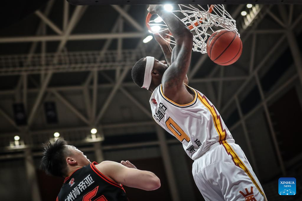 Jonathon Simmons of Shanxi Loongs dunks during the 36th round match between Jiangsu Dragons and Shanxi Loongs at the 2021-2022 season of the Chinese Basketball Association (CBA) league in Shenyang of northeast China's Liaoning Province, March 18, 2022. (Xinhua/Wang Yijie)