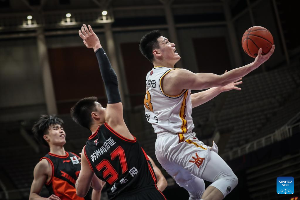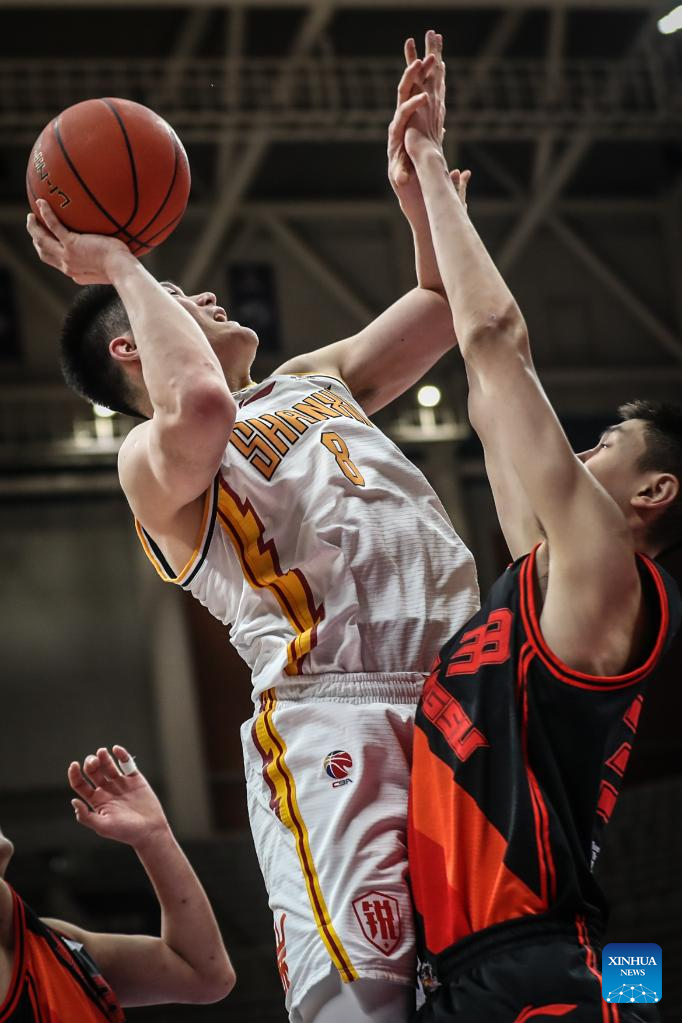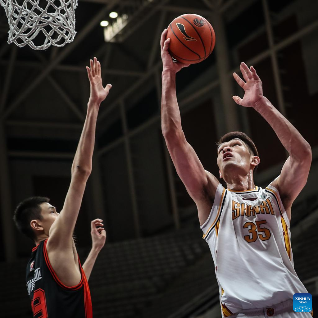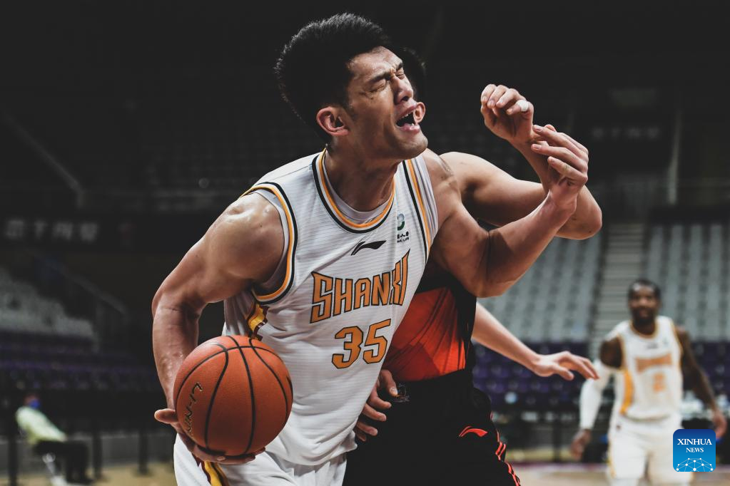 Ge Zhaobao of Shanxi Loongs competes during the 36th round match between Jiangsu Dragons and Shanxi Loongs at the 2021-2022 season of the Chinese Basketball Association (CBA) league in Shenyang of northeast China's Liaoning Province, March 18, 2022. (Xinhua/Wang Yijie)
