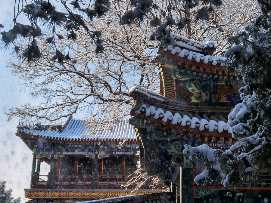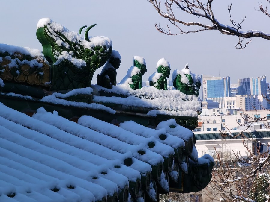 What is the metropolis like when white snow meets its classical Chinese buildings? The following photos will show you.