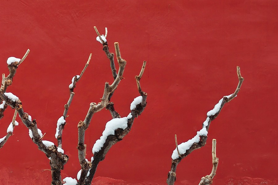 Photo taken on March 19, 2022 shows the snow scenery in Xicheng District of Beijing, capital of China. (Xinhua/Liu Jie)