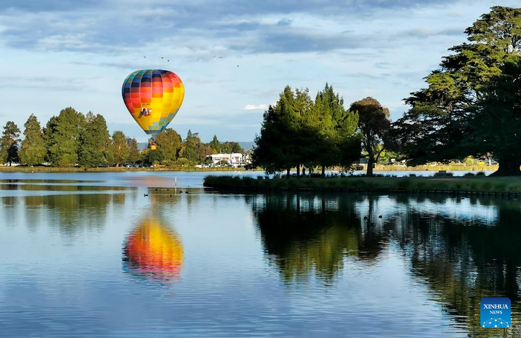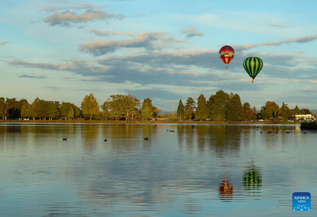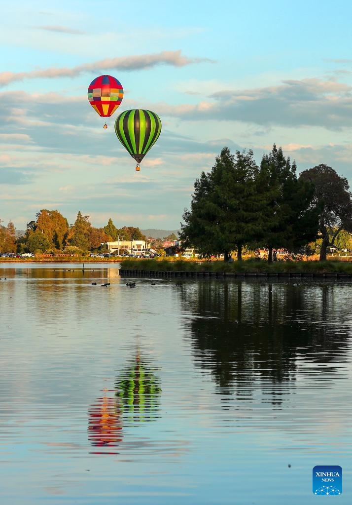A hot-air balloon is seen during the 5-day Balloons Over Waikato Festival in Hamilton, New Zealand, March 18, 2022. (Photo by Zhu Xi/Xinhua)