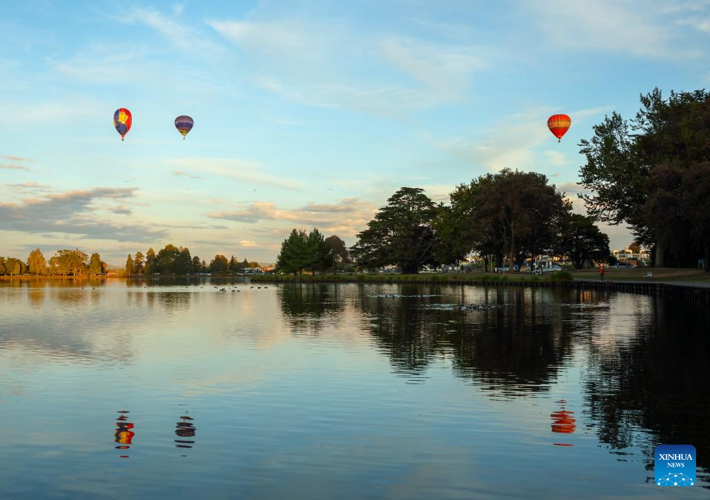 Hot-air balloons are seen during the 5-day Balloons Over Waikato Festival in Hamilton, New Zealand, March 19, 2022. (Photo by Zhu Xi/Xinhua)