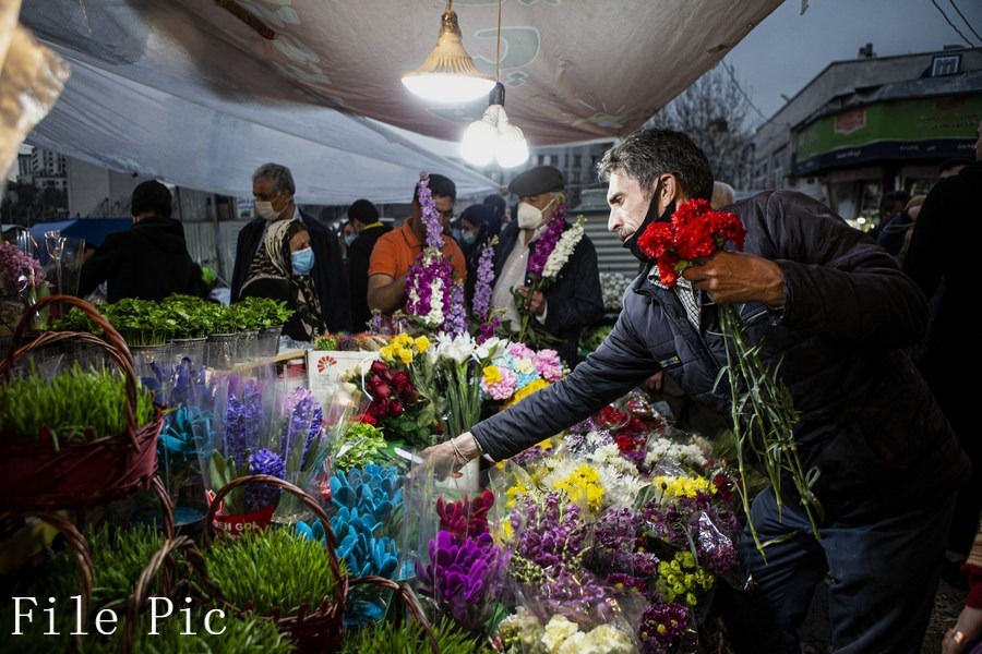 A man buys flowers at a bazaar ahead of Nowruz, the Iranian New Year, in Tehran, Iran, March 18, 2021. (Photo by Ahmad Halabisaz/Xinhua)