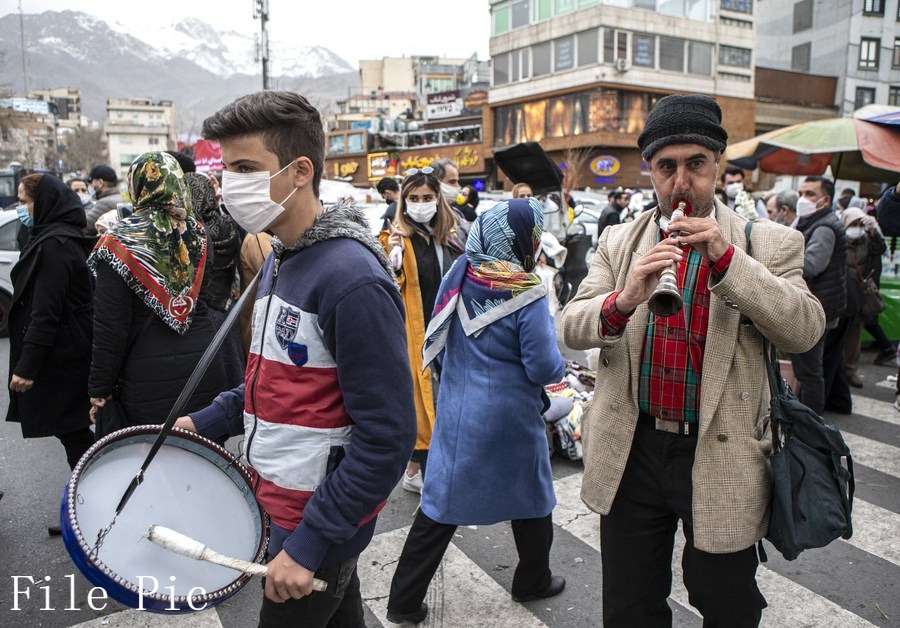 People play traditional music instruments at a bazaar ahead of Nowruz, the Iranian New Year, in Tehran, Iran, March 18, 2021. (Photo by Ahmad Halabisaz/Xinhua)