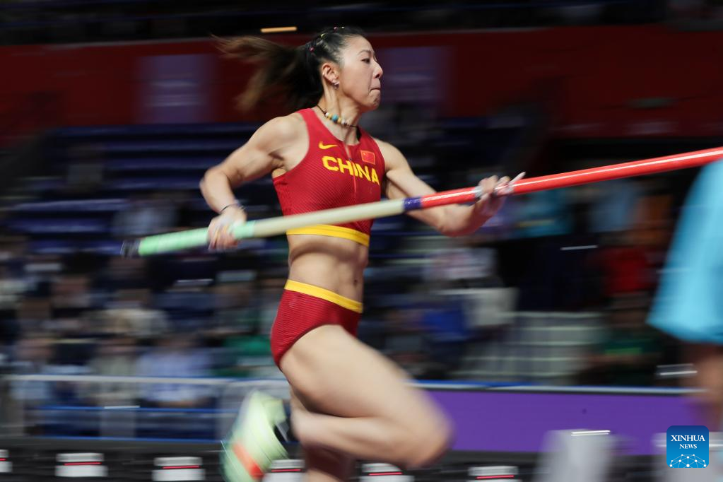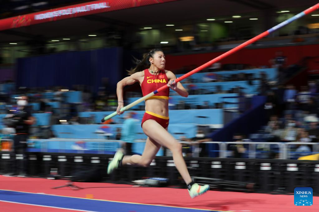 Xu Huiqin of China competes during the women's pole vault final at the World Athletics Indoor Championships Belgrade 2022 in Stark Arena, Belgrade, Serbia, March 19, 2022. (Xinhua/Zheng Huansong)