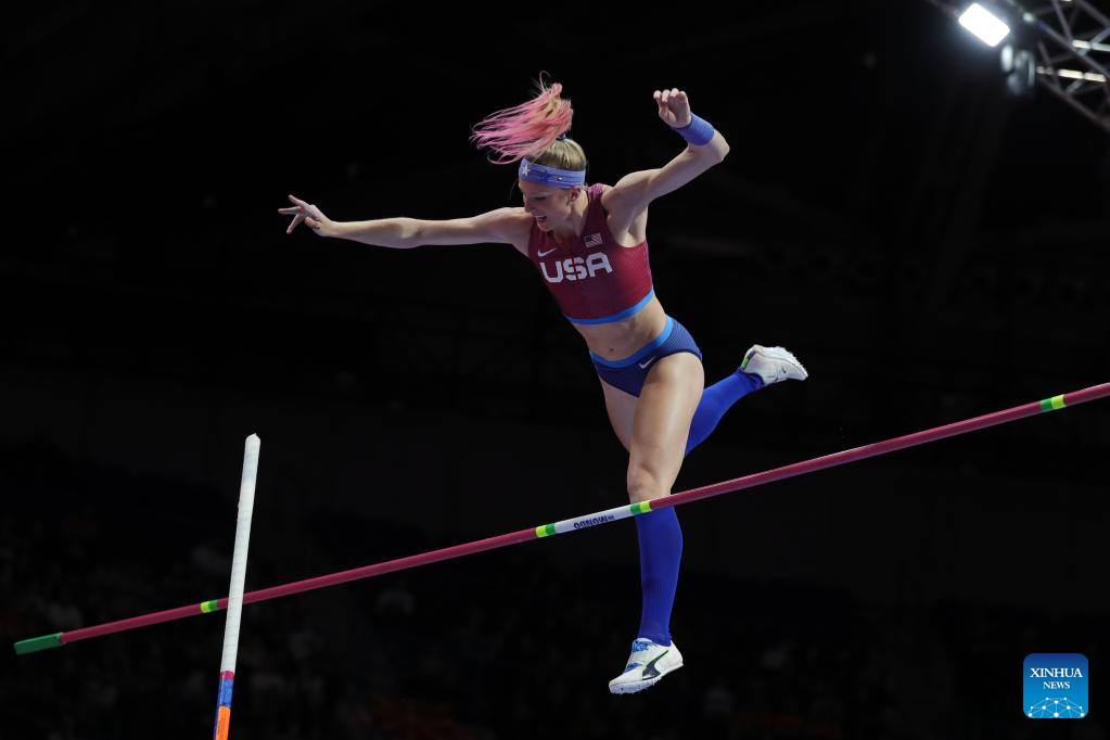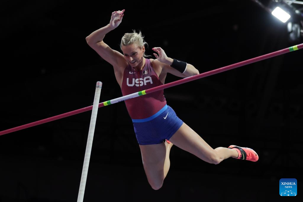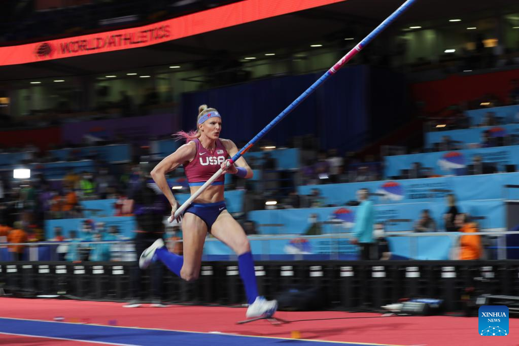 Katie Nageotte of the United States competes during the women's pole vault final at the World Athletics Indoor Championships Belgrade 2022 in Stark Arena, Belgrade, Serbia, March 19, 2022. (Xinhua/Zheng Huansong)