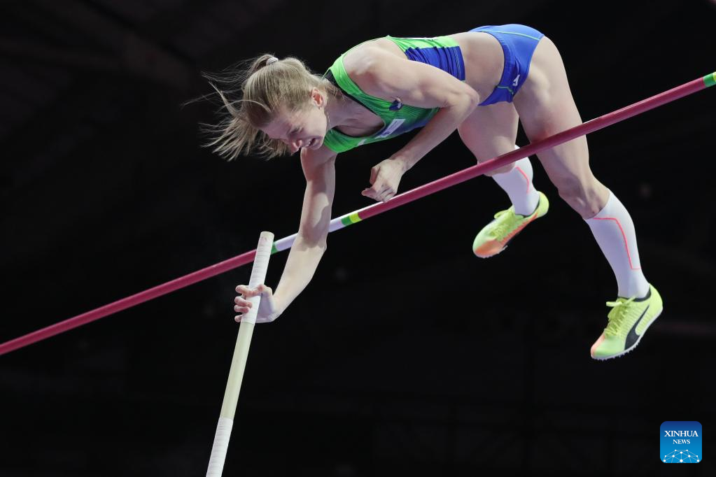 Tina Sutej of Slovenia competes during the women's pole vault final at the World Athletics Indoor Championships Belgrade 2022 in Stark Arena, Belgrade, Serbia, March 19, 2022. (Xinhua/Zheng Huansong)