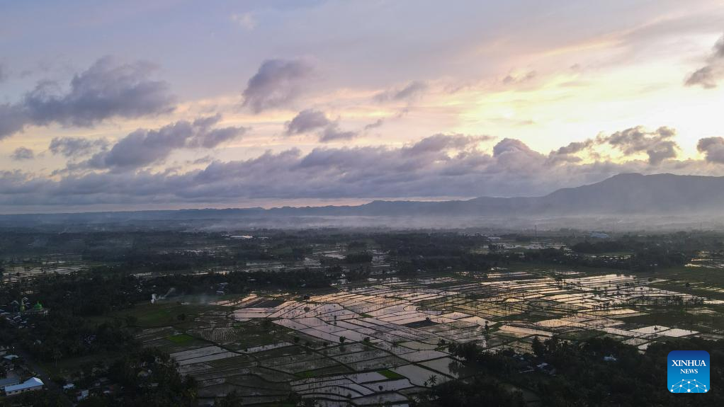Aerial photo taken on March 17, 2022, shows the view of Sukarara village of Lombok Island, in Indonesia. Lombok Island belongs to West Nusa Tenggara Province of Indonesia. Separated from Bali Island by the Lombok Strait in the west, Lombok Island's clear beaches, neat farmland, waterfalls hidden in tropical rain forests and other unique scenery make it an ideal tourist destination. (Xinhua/Xu Qin)