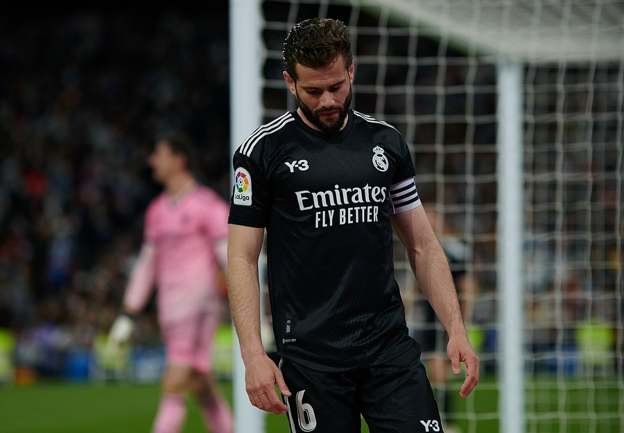 Real Madrid's Nacho Fernandez cuts a dejected figure during his side's heavy defeat. (Photo by Pablo Morano/Xinhua)