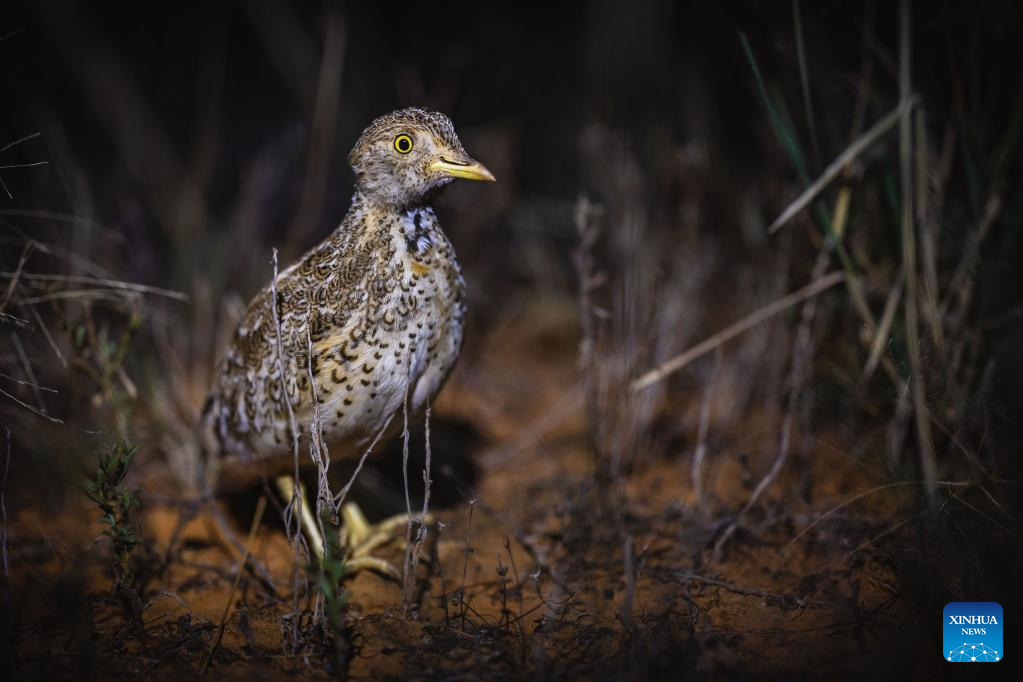 A plains-wanderer is seen in the wild in central New South Wales, Australia, on March 19, 2022. (Photo by Alex Pike/Handout via Xinhua)