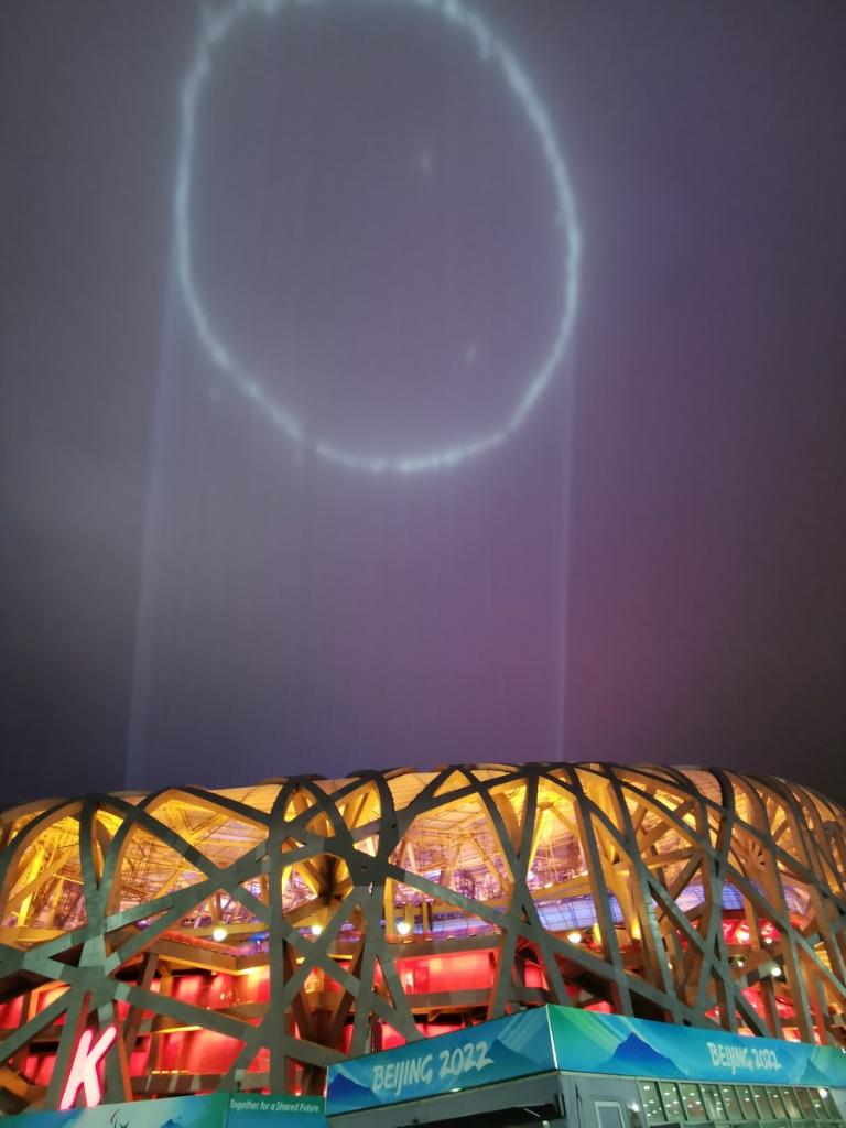 Photo taken with a mobile phone shows the National Stadium, also known as the Bird's Nest, in Beijing, capital of China, March 13, 2022. (Xinhua/Zhang Chao)
