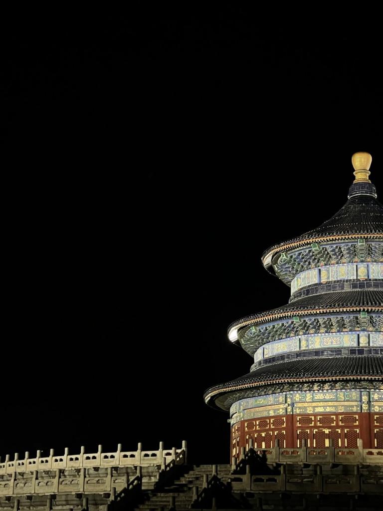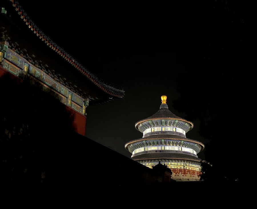 Photo taken with a mobile phone shows an architecture of the Temple of Heaven in Beijing, capital of China, Feb. 3, 2022. (Xinhua/Chu Jiayin)