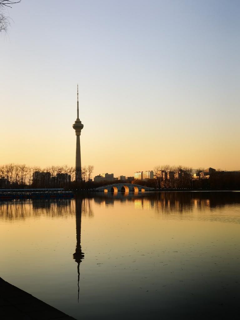 Photo taken with a mobile phone shows the Central Radio & TV Tower in Beijing, capital of China, Dec. 4, 2021. (Xinhua/Ren Pengfei)
