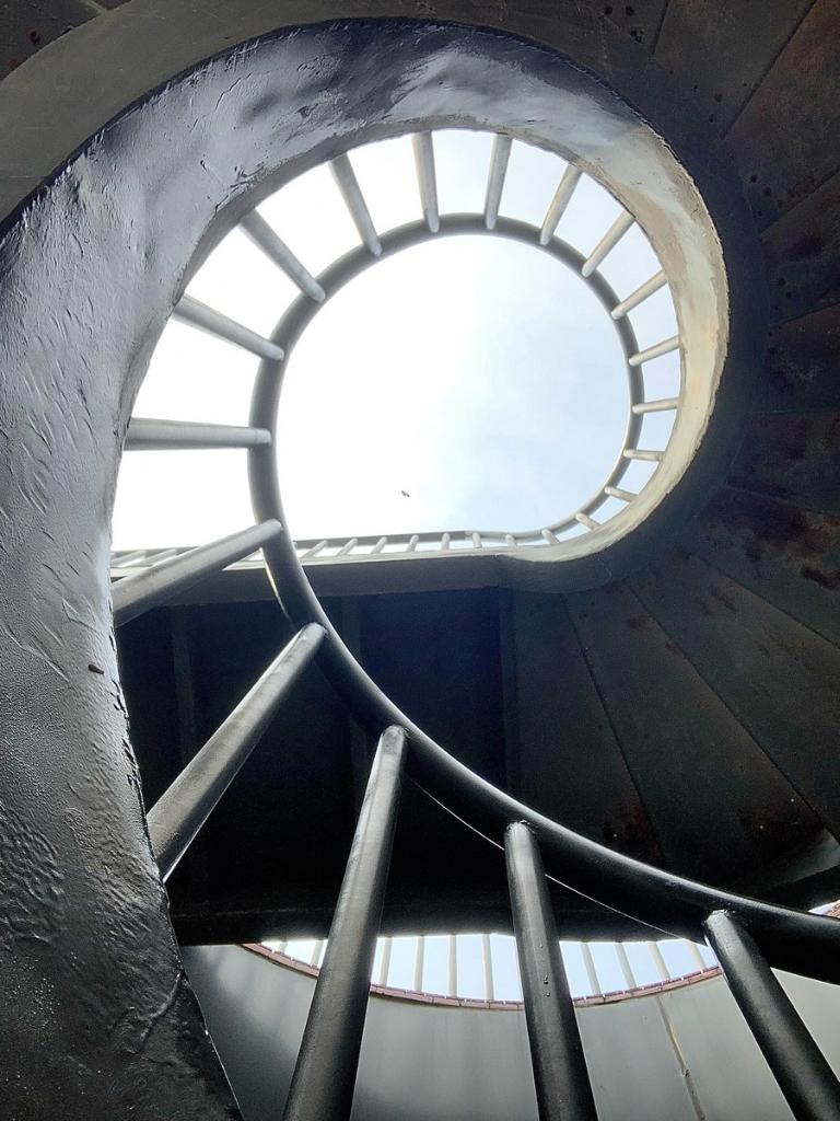 Photo taken with a mobile phone shows a winding staircase in Xicheng District of Beijing, capital of China, Aug. 30, 2021. (Xinhua/Meng Tao)