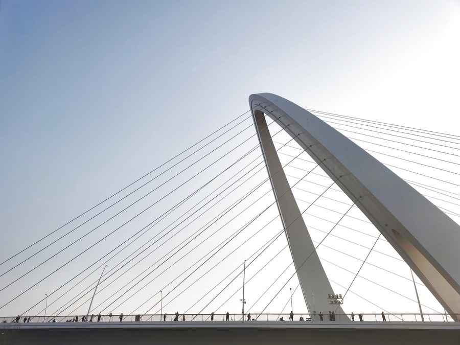 Photo taken with a mobile phone shows the New Shougang Bridge in Beijing, capital of China, Feb. 9, 2022. (Xinhua/Ding Hongfa)