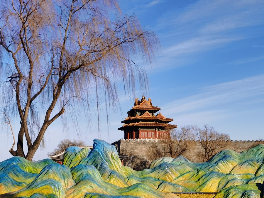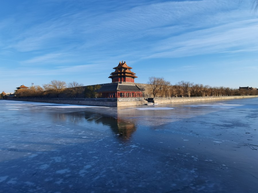 Photo taken with a mobile phone shows a turret of the Palace Museum in Beijing, capital of China, Feb. 3, 2022. (Xinhua/Ding Hongfa)