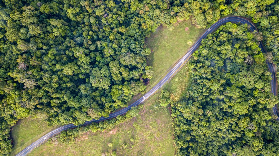Aerial photo taken on March 21, 2022 shows forests in Khao Yai National Park, Thailand. Khao Yai National Park is the first national park in Thailand, with a total area of about 2,168 square kilometers. The annual International Day of Forests is marked on March 21. (Xinhua/Wang Teng)