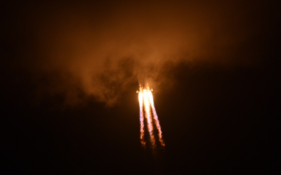 A Long March-5 rocket, carrying the Chang'e-5 spacecraft, blasts off from the Wenchang Spacecraft Launch Site on the coast of southern island province of Hainan, Nov. 24, 2020. (Xinhua/Guo Cheng)