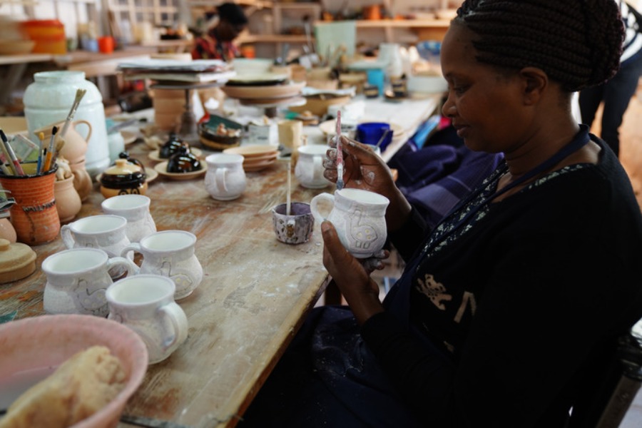 NAIROBI, March 22 (Xinhua) -- Kazuri, which means "small and beautiful" in Swahili, is a well-known local brand for handmade and hand-painted ceramic beads, jewelry and pottery in Kenya. The Kazuri workshop in Karen, Nairobi of Kenya, has employed more than 340 women, mostly single mothers.