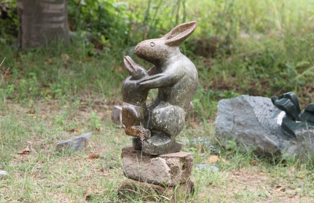 This photo taken on March 17, 2022, shows a stone sculpture depicting a mother rabbit showing affection to her child in Chitungwiza, a town south of Harare, Zimbabwe, on March 17, 2022. (Xinhua/Tafara Mugwara)