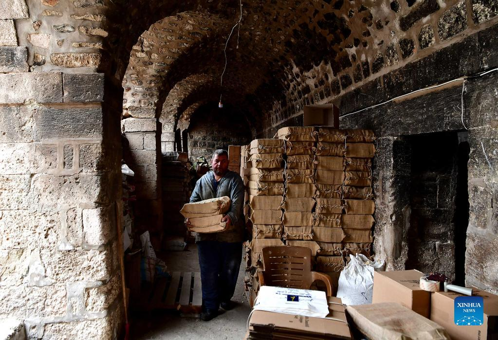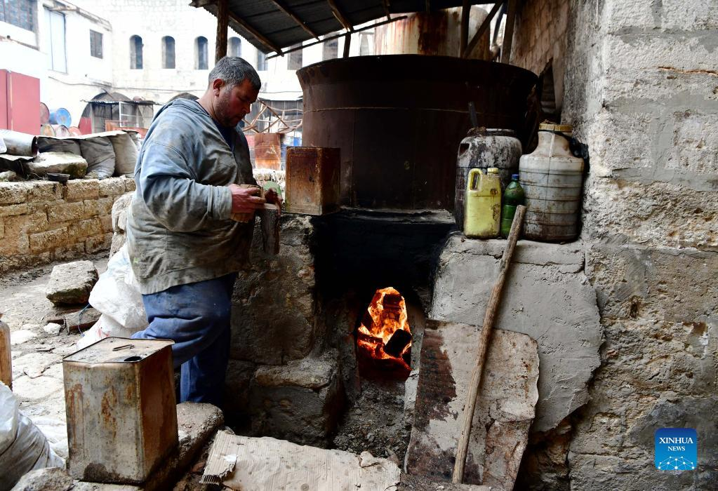 ALEPPO, Syria, March 25 (Xinhua) -- Walking into the Zanabili soap factory in the old city of Aleppo in northwestern Syria is somewhat tricky, as the scars of the protracted civil war are still visible here and there.
