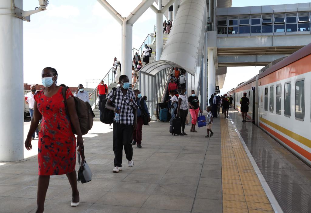 Passengers are seen at the Nairobi station of Mombasa-Nairobi Standard Gauge Railway (SGR) in Nairobi, capital of Kenya, Nov. 17, 2021. (Xinhua/Dong Jianghui)