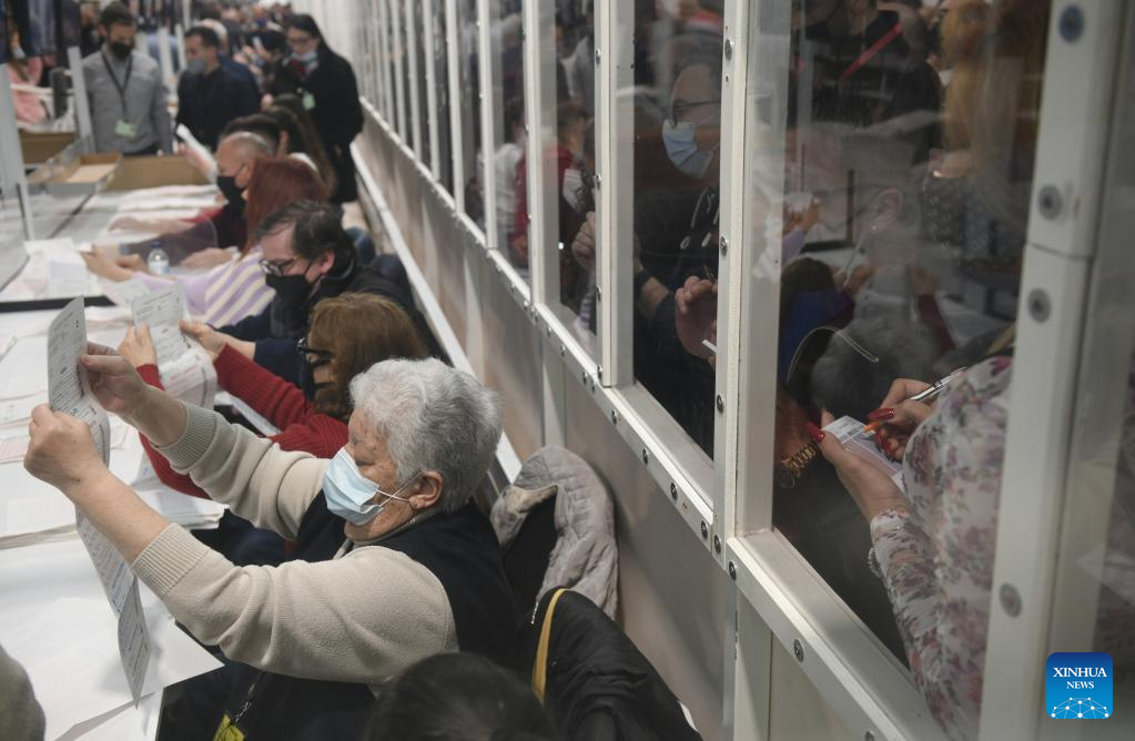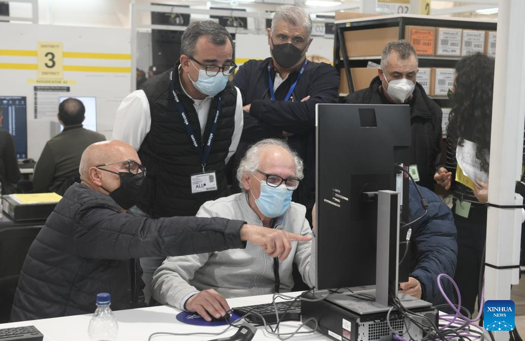 People work at a vote counting hall in Naxxar, Malta, on March 27, 2022. Malta's Labour Party has won the general election with a comfortable majority, Prime Minister Robert Abela announced on Sunday. (Photo by Jonathan Borg/Xinhua)
