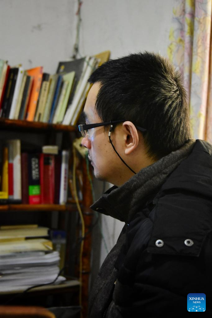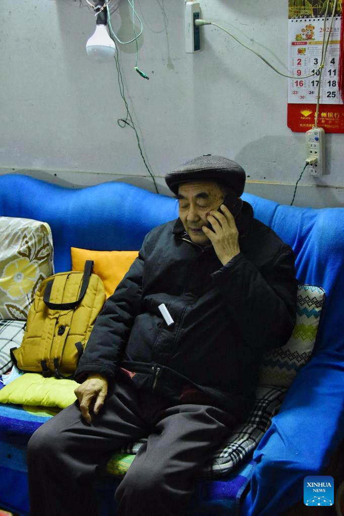 Jin Xingyong receives phone calls from people who want to help his family at home in Hangzhou, east China's Zhejiang Province, Jan. 19, 2022. (Xinhua/Zheng Mengyu)