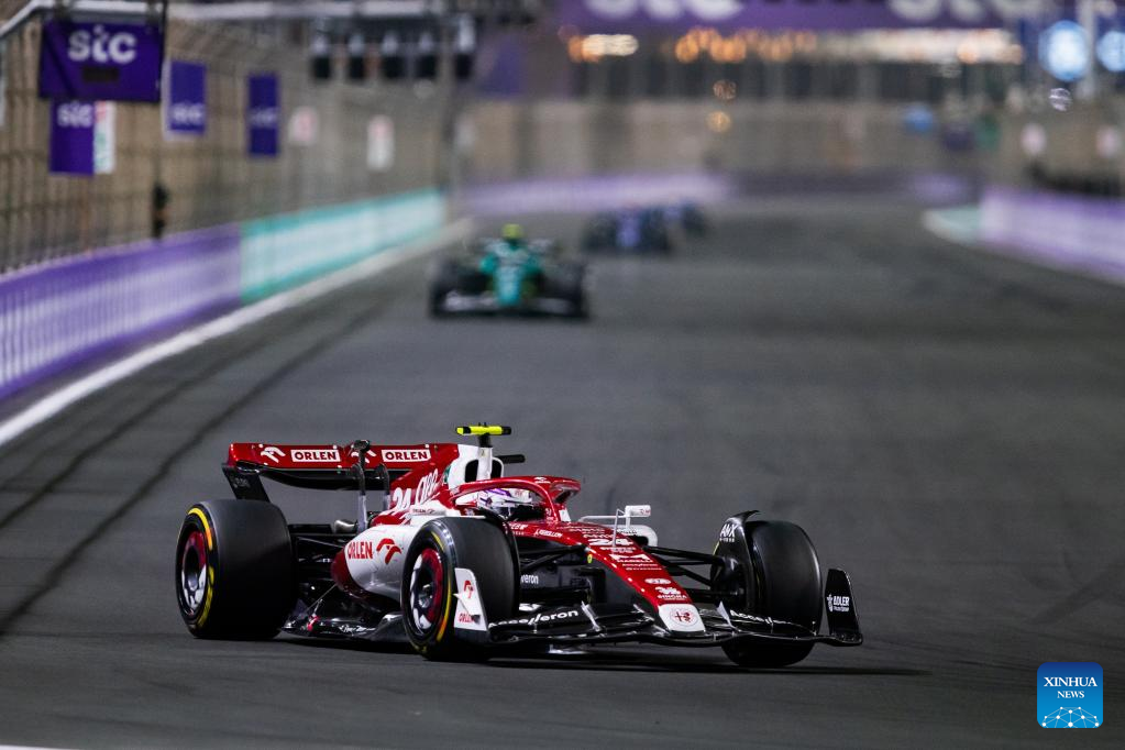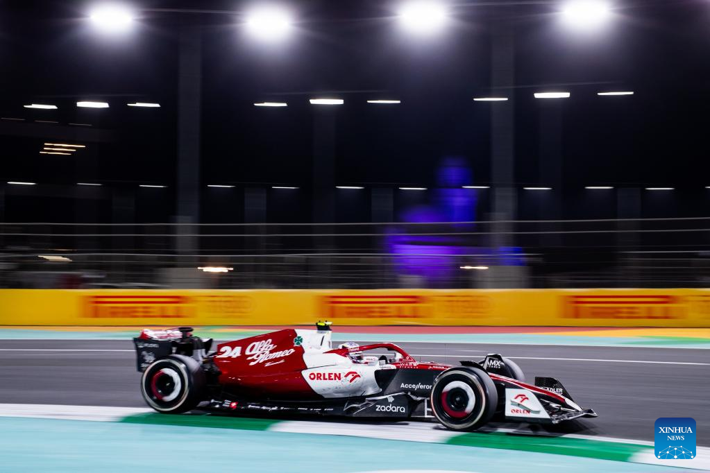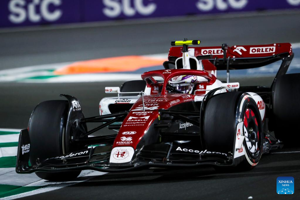Alfa Romeo's Chinese driver Zhou Guanyu competes during the 2022 Saudi Arabian Grand Prix at Jeddah Corniche Circuit in Jeddah, Saudi Arabia on March 27, 2022. (DPPI/Handout via Xinhua)