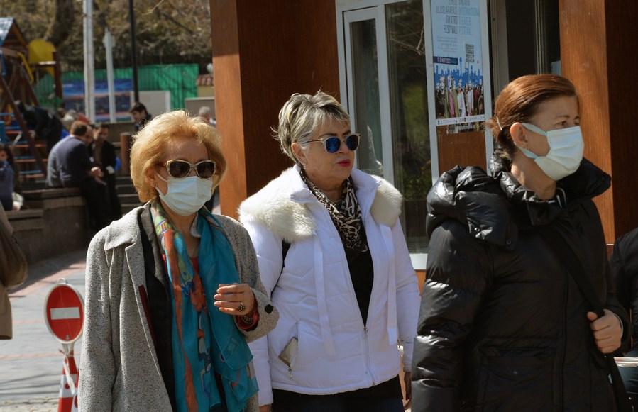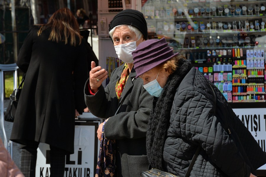 Elderly people are seen in a street in Ankara, Turkey, on March 29, 2022. (Photo by Mustafa Kaya / Xinhua)