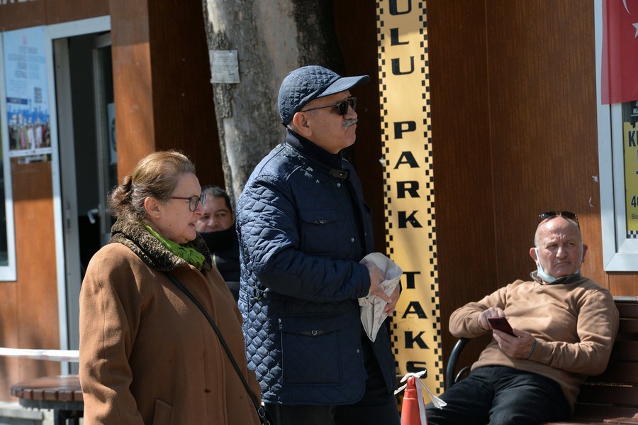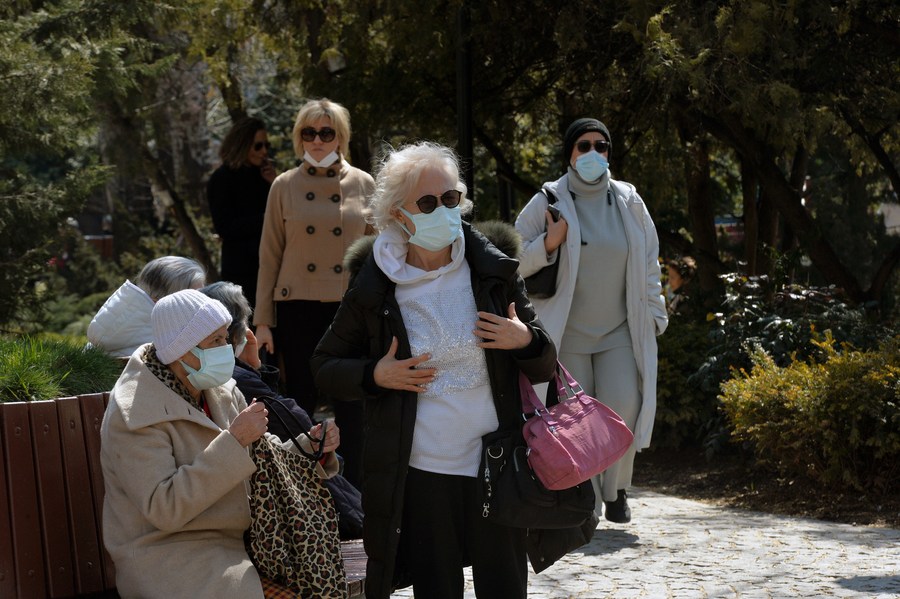 Elderly people are seen in a park in Ankara, Turkey, on March 29, 2022. (Photo by Mustafa Kaya / Xinhua)