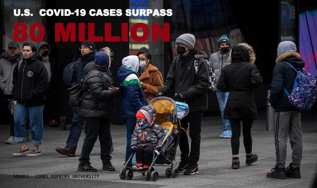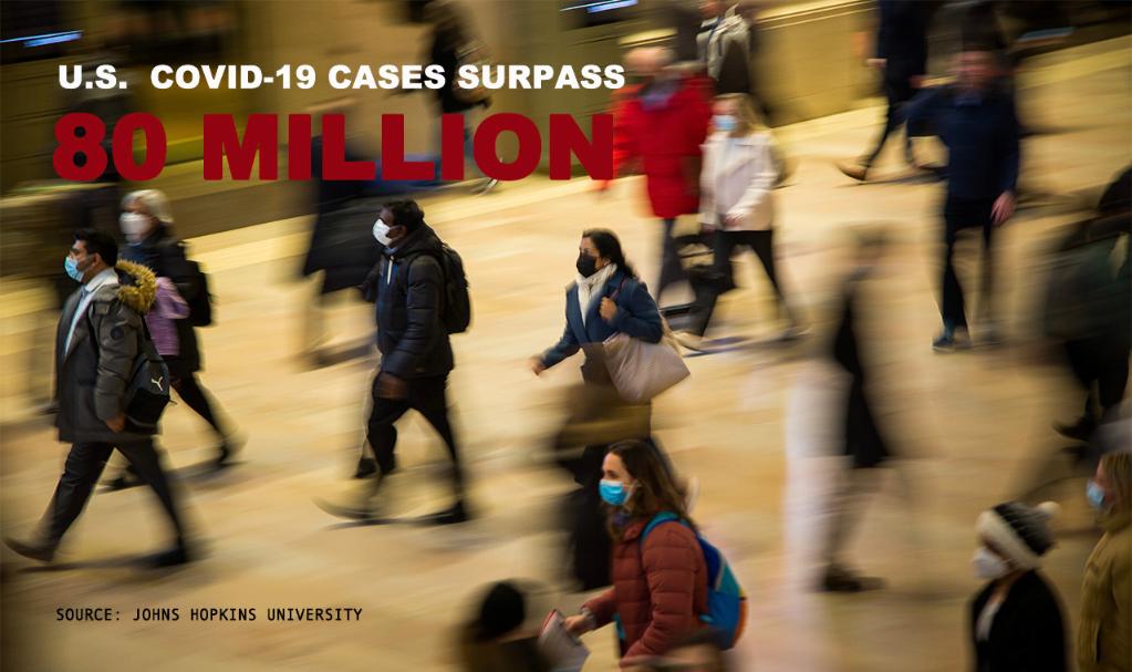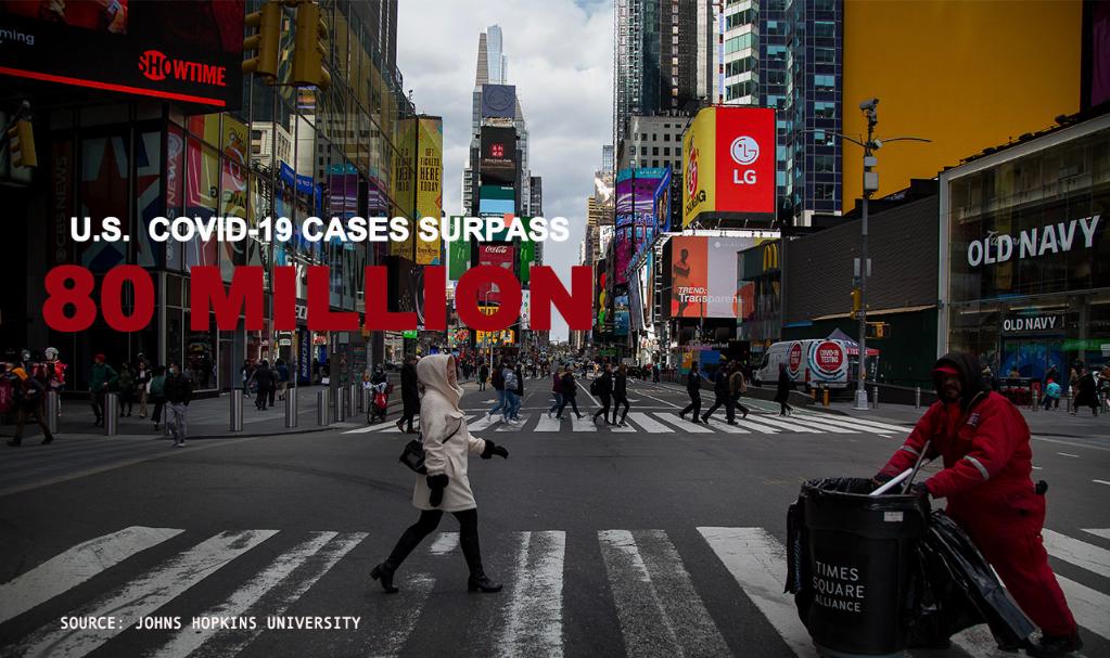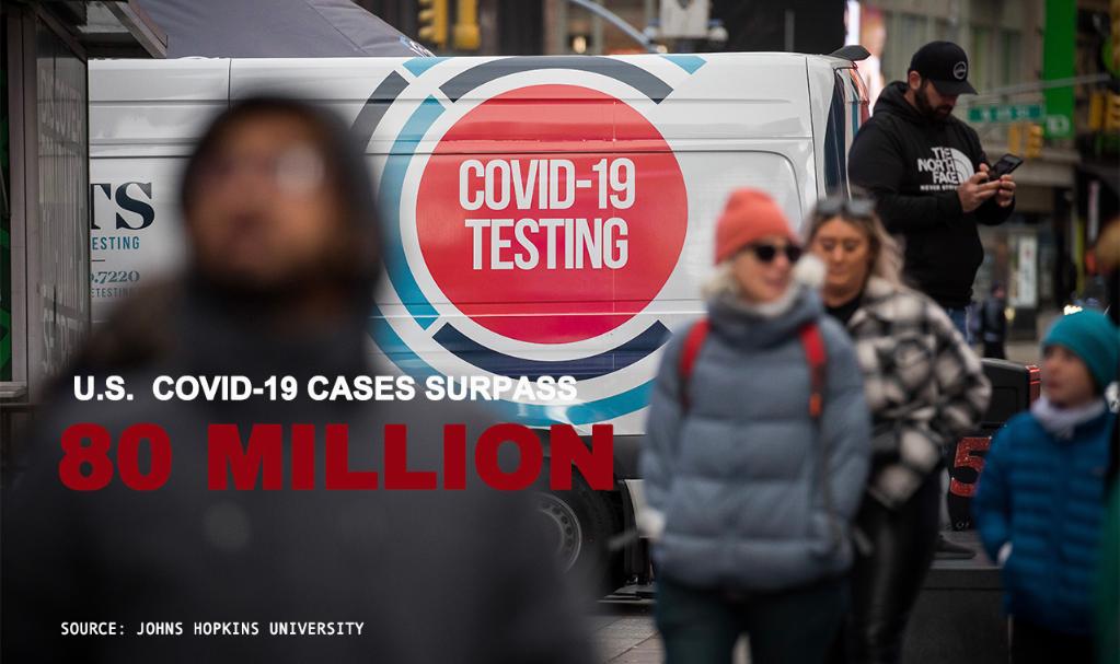 U.S. COVID-19 case count rose to 80,000,546, with a total of 978,102 deaths, as of 12:20 p.m. local time (1620 GMT), showed the data.