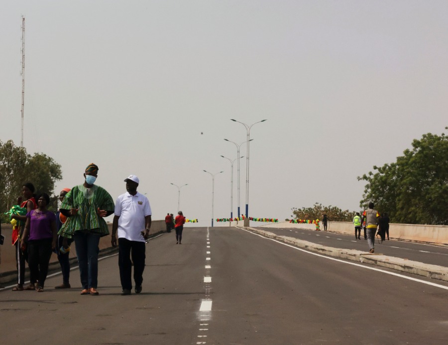 Photo taken on March 29, 2022, shows people walking on the Tamale interchange in Tamale, Ghana. (Xinhua)