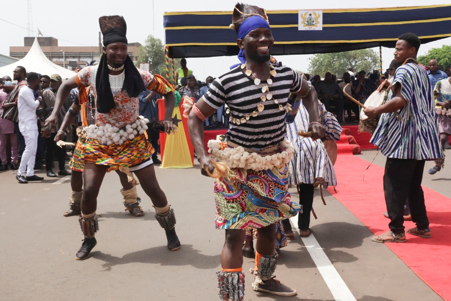 Locals celebrate the commissioning of the Tamale interchange project on March 29, 2022. (Xinhua)