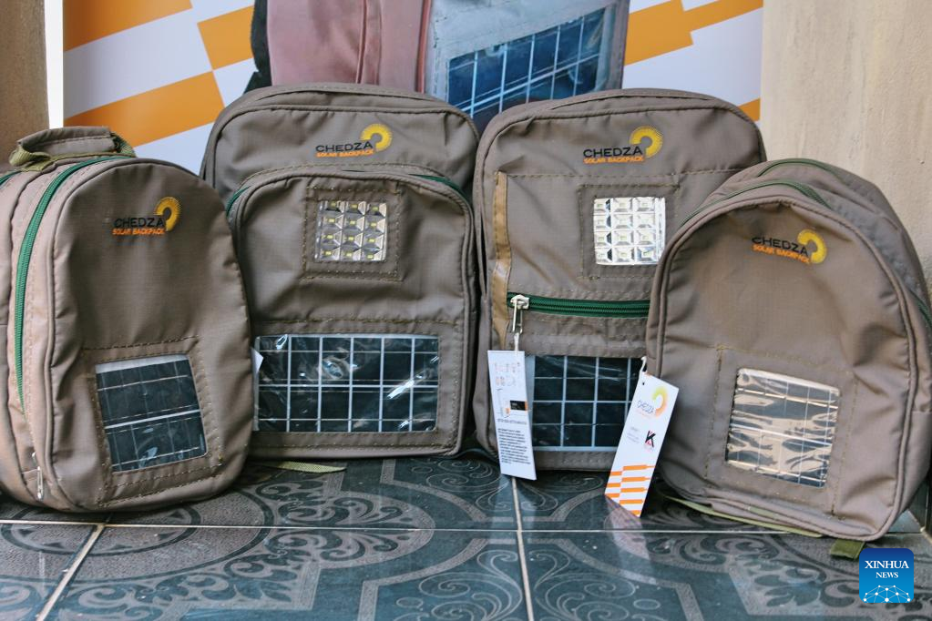 Chedza Solar Backpacks are pictured in Gaborone, Botswana, on March 21, 2022. In the first week of April, disadvantaged children in Botswana villages such as Tshono, Mokhomba, Lefoko and Sevrelela will receive Chedza Solar Backpacks that will enable them to study at night. (Photo by Sharon Tshipa/Xinhua)