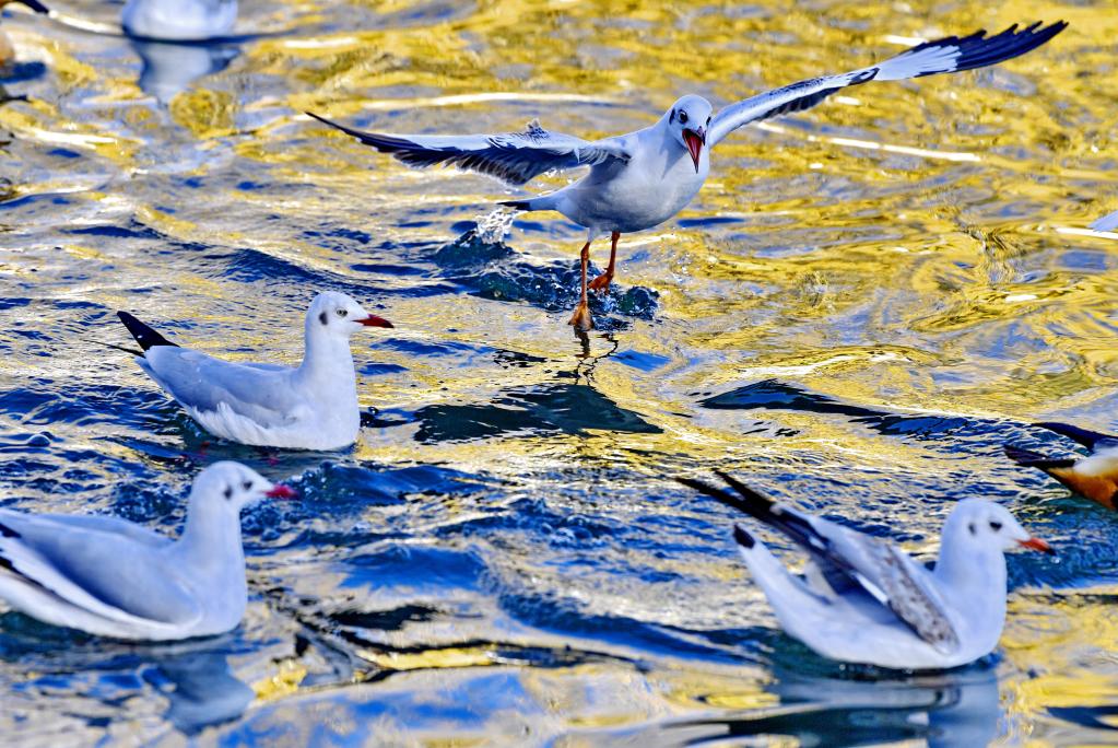Black-headed gulls are seen at Longwangtan park in Lhasa, southwest China's Tibet Autonomous Region, Nov. 17, 2021. (Xinhua/Zhang Rufeng)