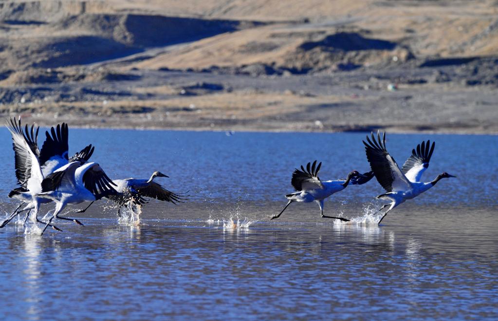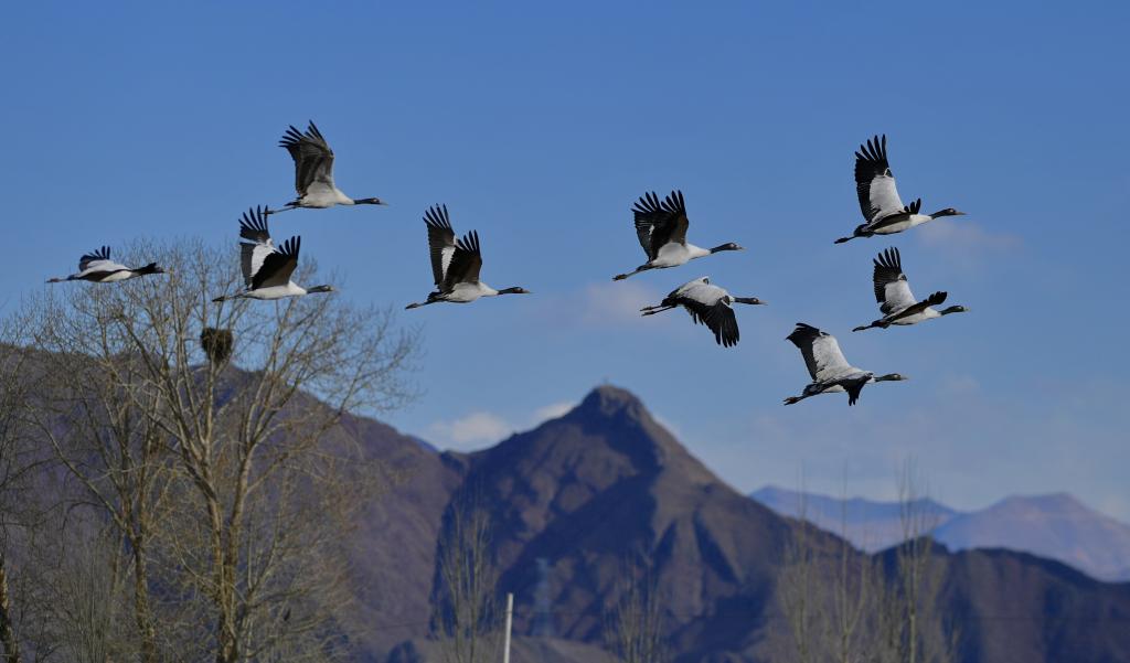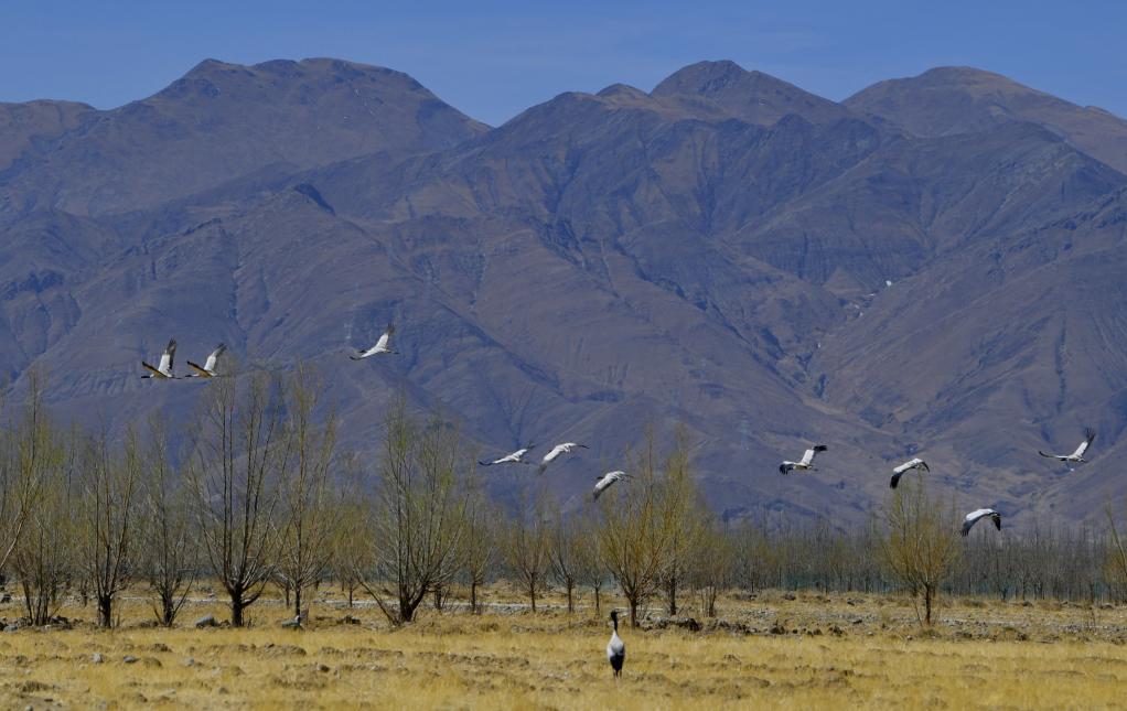 Tibet has seen a steady increase in endangered wildlife population, thanks to its continuous efforts over the past decades. The population of black-necked cranes has exceeded 10,000 from 1,000 to 3,000 previously.