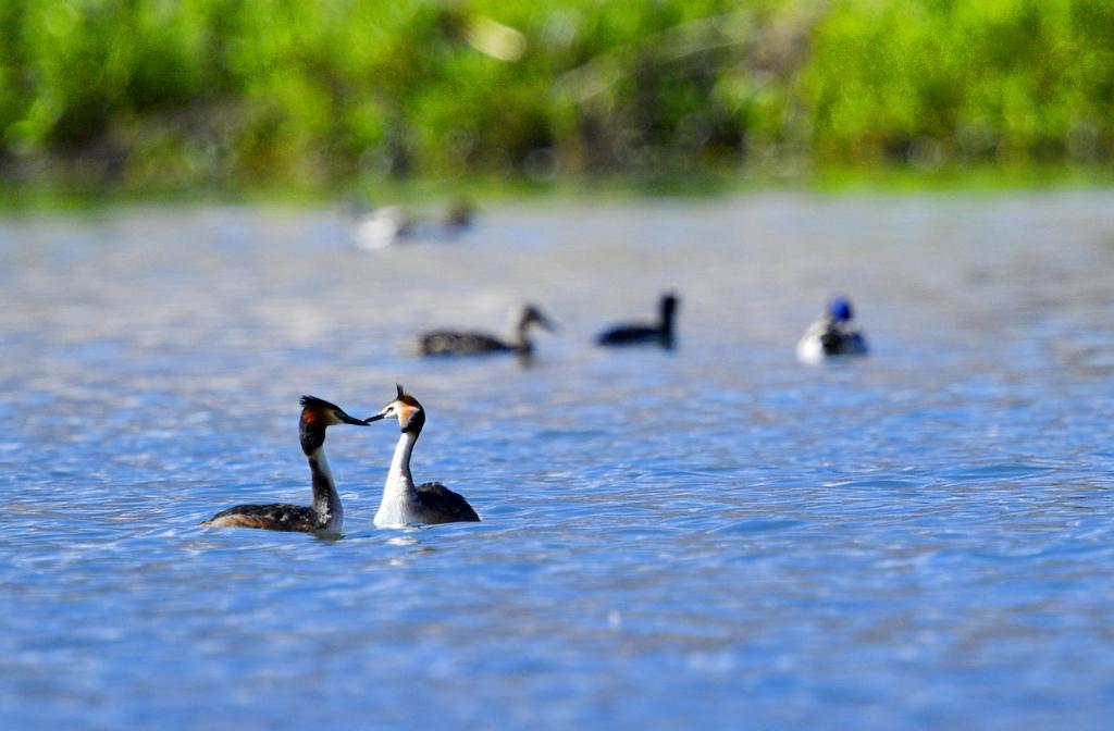 Grebes are seen in the Lhalu wetland national nature reserve in Lhasa, southwest China's Tibet Autonomous Region, June 14, 2021. (Xinhua/Zhang Rufeng)