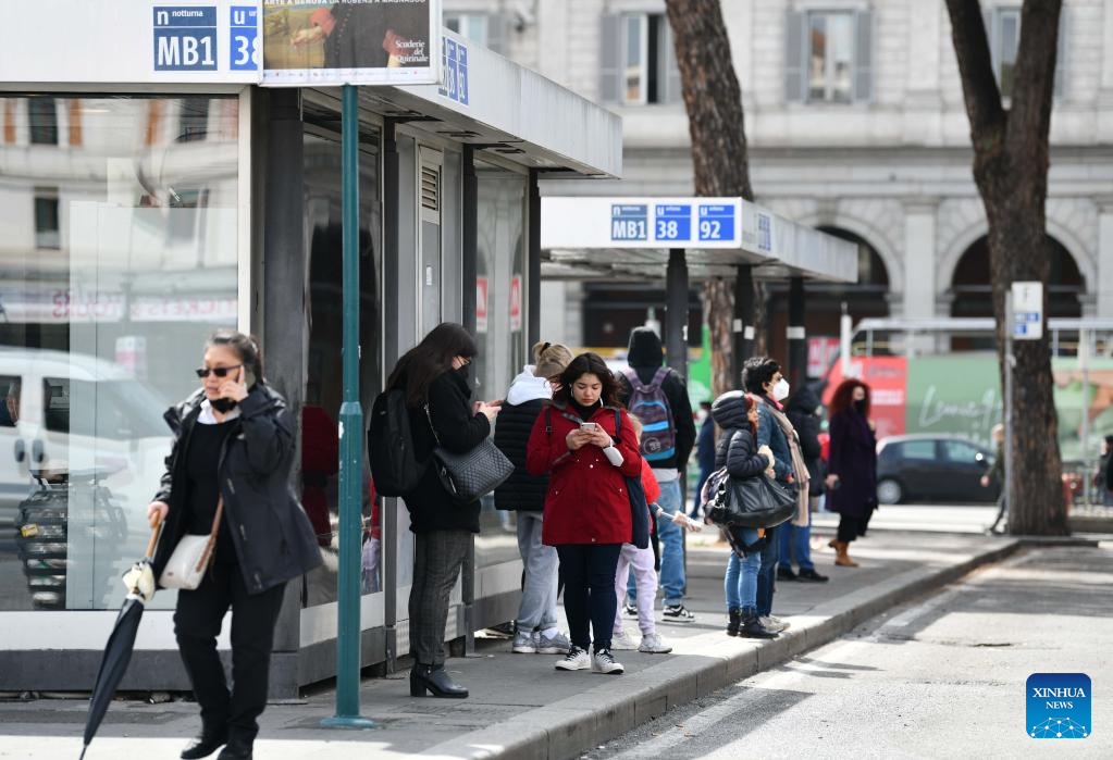 Passengers wait at a bus station in Rome, Italy, April 1, 2022. More than two years after its announcement, and following several extensions, Italy on Thursday officially ended the COVID-19 pandemic state of emergency.
