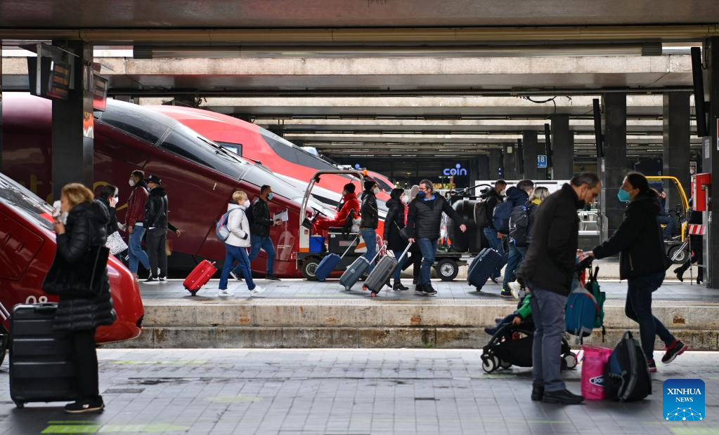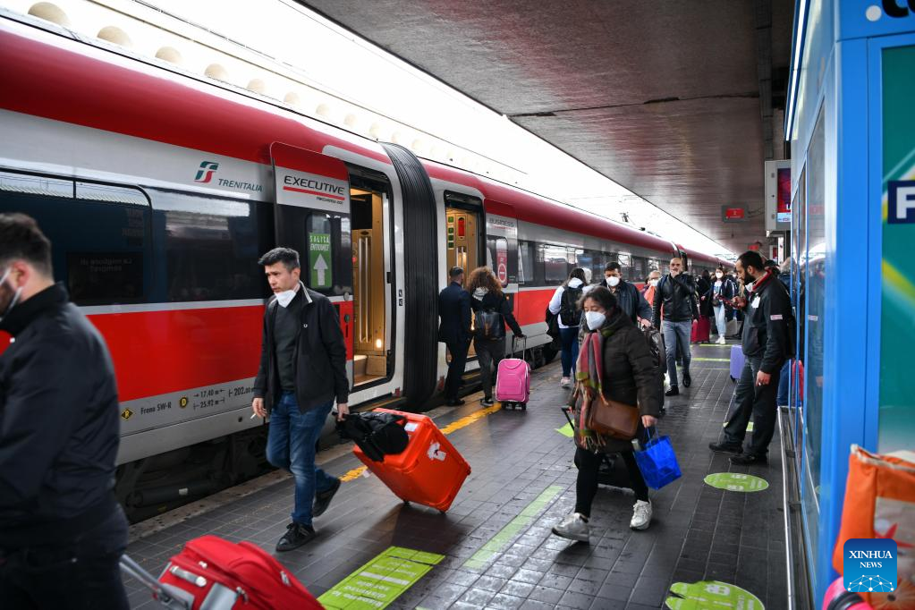 Passengers walk at Roma Termini railway station in Rome, Italy, April 1, 2022. More than two years after its announcement, and following several extensions, Italy on Thursday officially ended the COVID-19 pandemic state of emergency.
