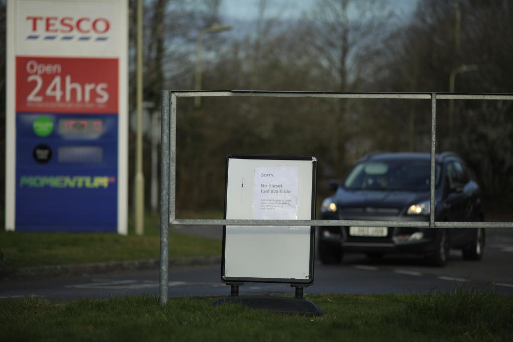 Photo taken on March 10, 2022 shows a notice saying that no diesel fuel is available at a petrol station in Basingstoke, Britain. (Photo by Tim Ireland/Xinhua)