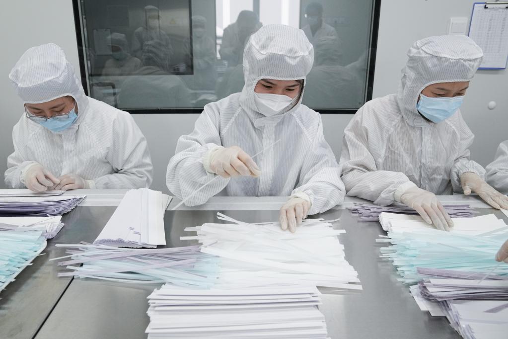 With a capacity of up to 10 million kits per day, Biouhan healthcare company is a major manufacturer of COVID-19 antigen self-testing kits in east China's Anhui Province.